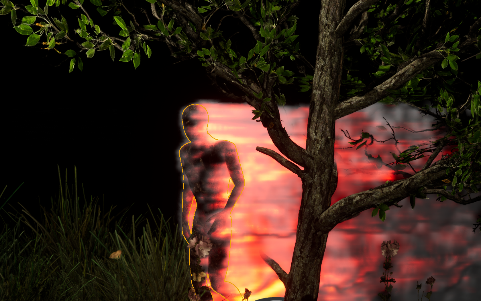 After that, the scene shifts to a more serene woodland where you can hear the birds and the wind. The participant develops a sprint action to gravestones in a cemetery, but then find themselves in a pitch-black forest with a figure emerging from the woods on fire.